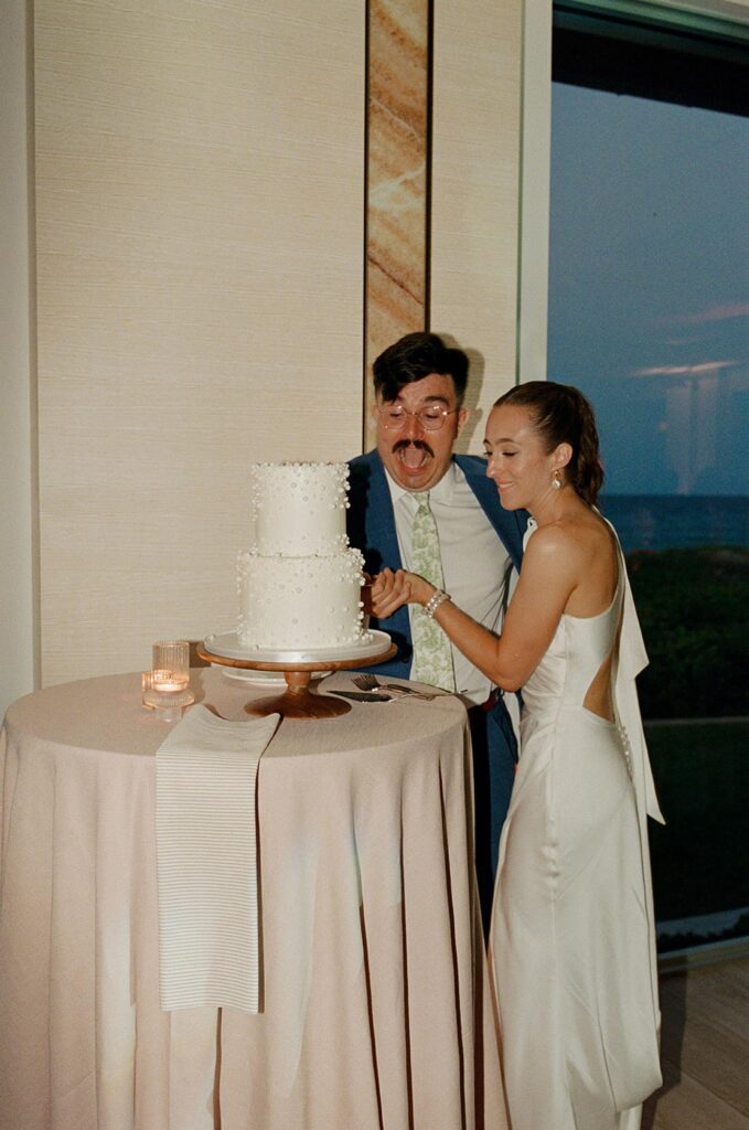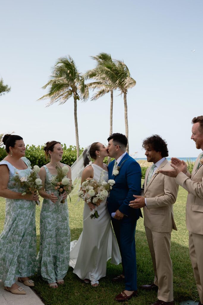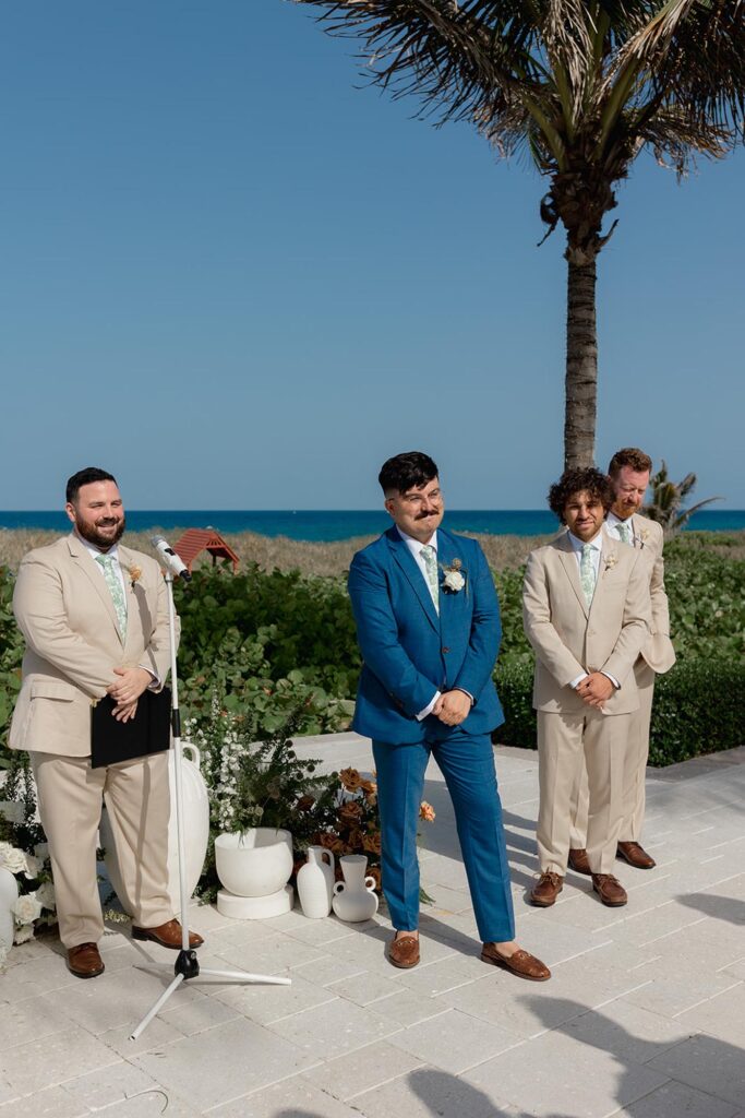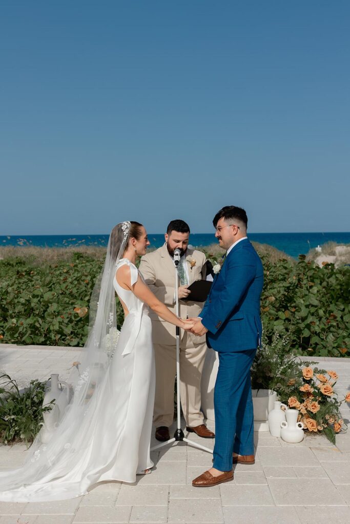 The couple got ready at a nearby hotel before heading over to the Delray Beach Club. The ceremony took place with the Atlantic Ocean as the backdrop. There was no stress, no rushing; just two people ready to start a new chapter together.