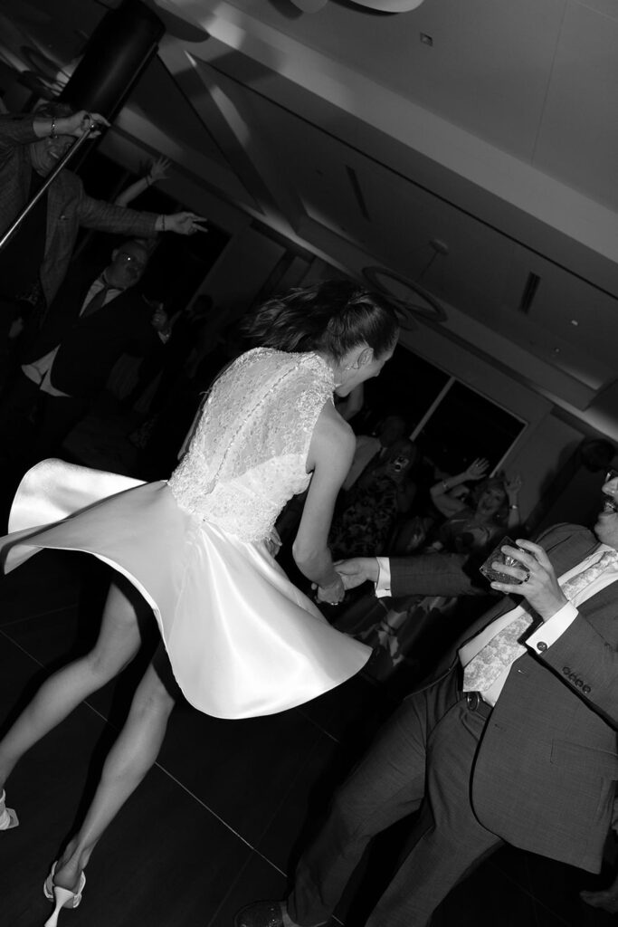 Amy changed into a shorter dress for the reception, which gave her more freedom to move on the dance floor. It was a fun switch that matched the more relaxed vibe of the evening!
