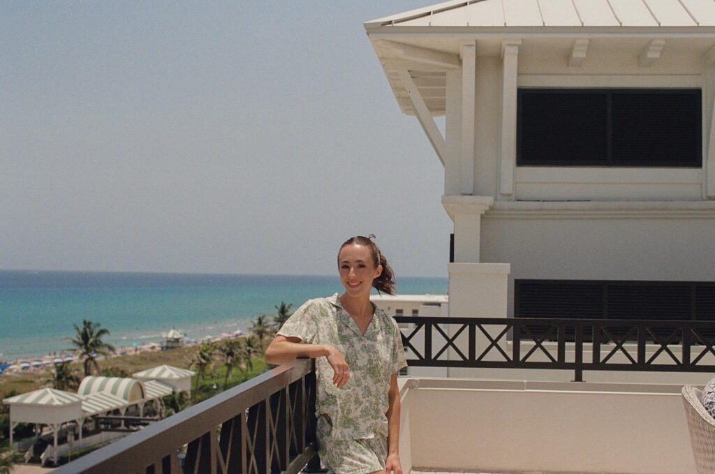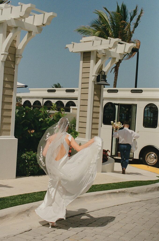 film wedding photos at Bride on the porch at delray beach club florida​